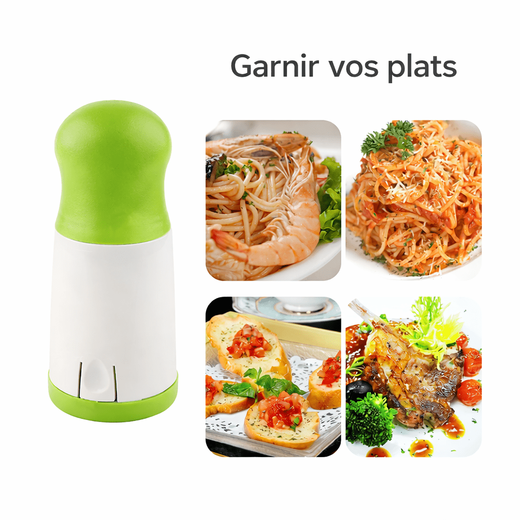 Il permet d’ajouter rapidement des herbes fraîches à vos recettes pour améliorer le goût et la présentation de vos plats.