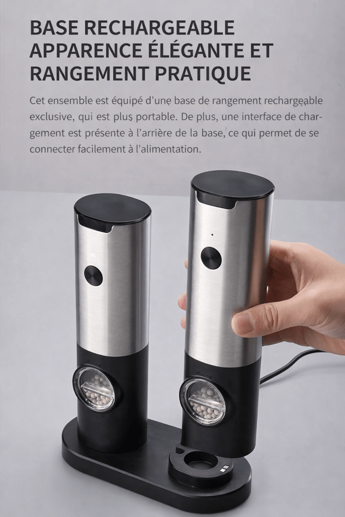 Un moulin à poivre électrique rechargeable offre plusieurs avantages importants : il permet un broyage rapide sans effort, un usage à une main et une précision supérieure grâce au réglage de la mouture. Contrairement aux moulins manuels, il améliore le confort d’utilisation et garantit une assaisonnement homogène.